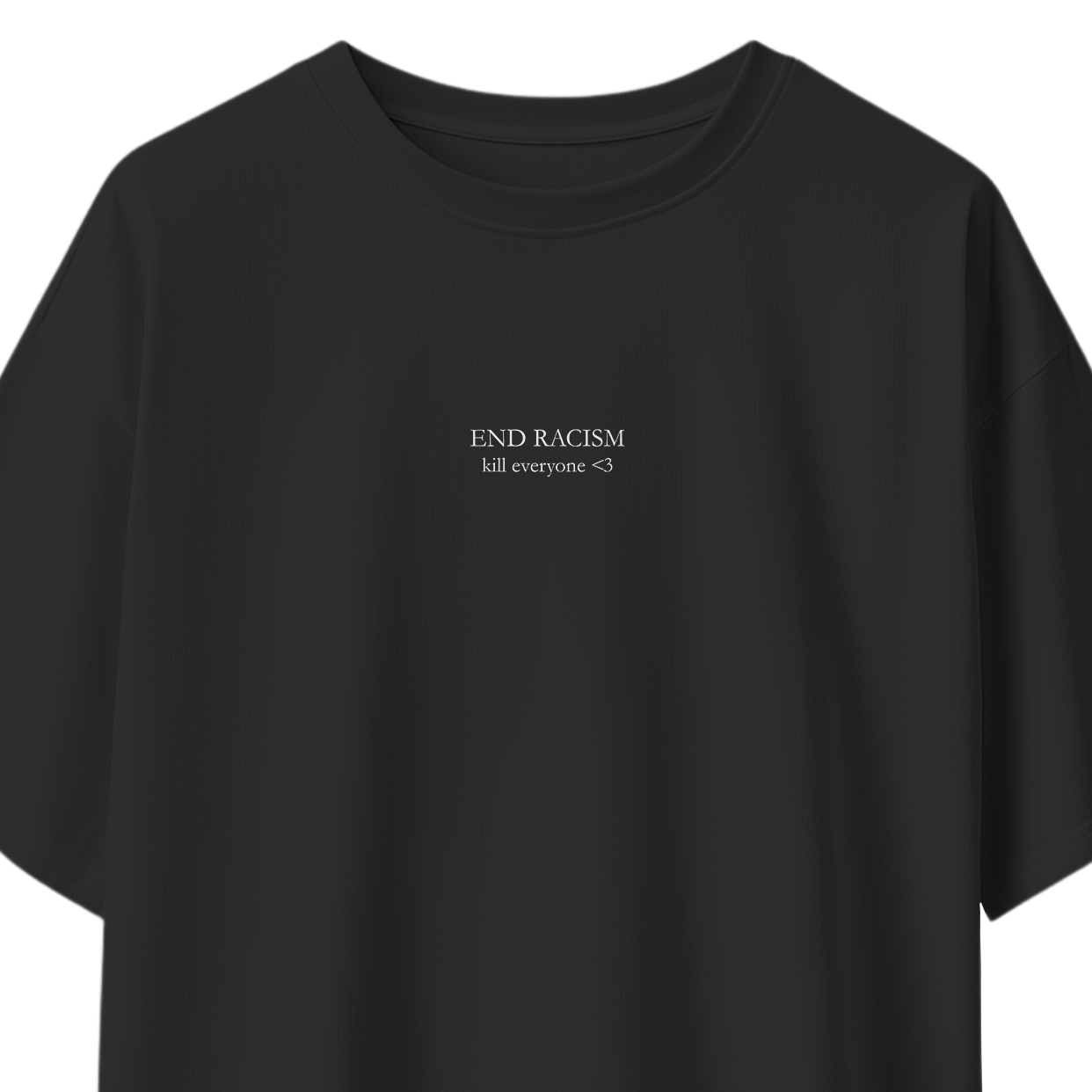 Dark humor with a point. This tee takes a swing at the ugliest parts of humanity with blunt-force wit. It’s the kind of piece that starts conversations, flips expectations, and refuses to sugarcoat its stance. Stripped back in design so the words do all the heavy lifting.