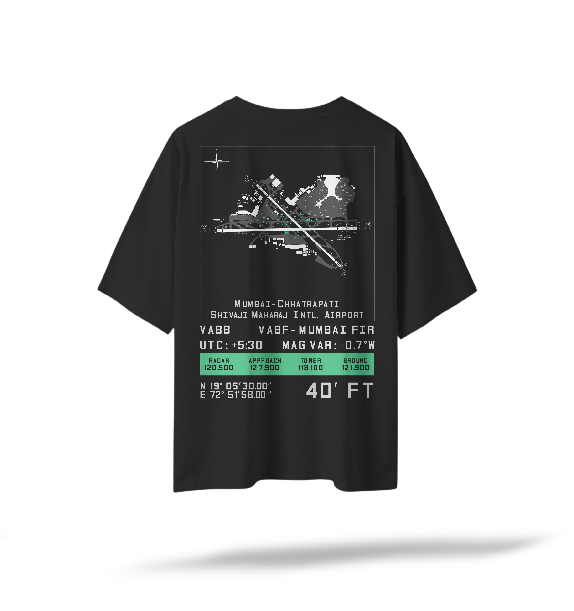 A tribute to India’s busiest western hub, this tee features the runway chart of Chhatrapati Shivaji Maharaj International Airport, VABB. With authentic radar data, real-world coordinates, and a tactical aviation layout, this piece blends pilot-grade precision with streetwear impact. Cleared for takeoff, no tower approval needed.