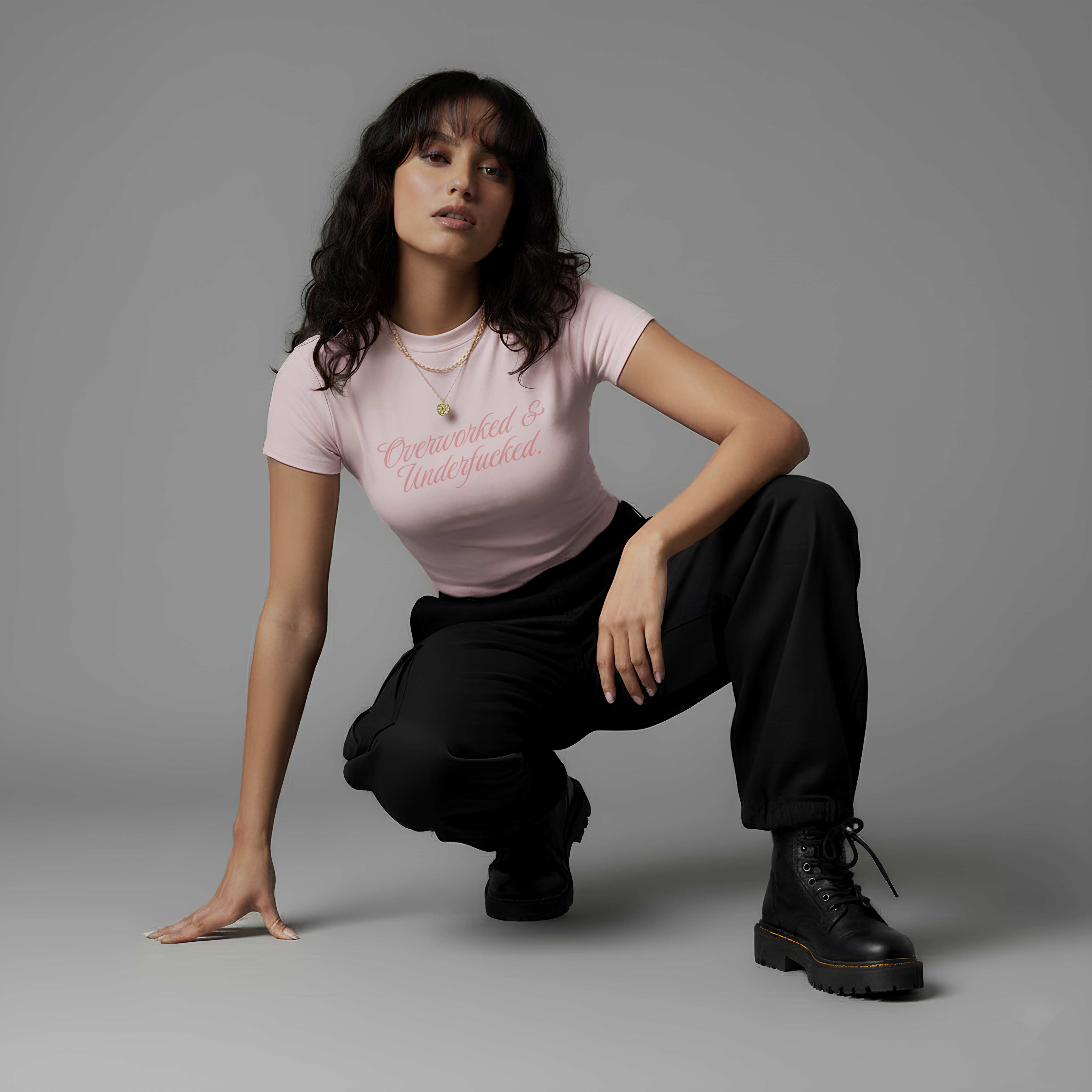 For the girls who’ve had enough of deadlines, of burnout, of pretending they’re fine. This one’s for the bold, the blunt, and the beautifully unbothered. A declaration, not an apology. Equal parts chaos and charm, it’s a middle finger to corporate misery wrapped in soft cotton and hot energy.